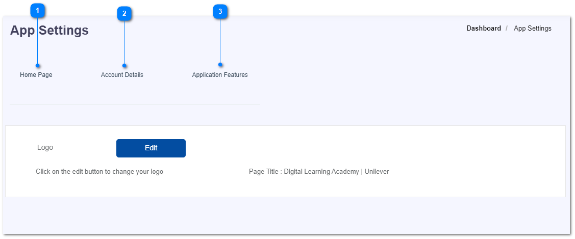 - There are 3 sections in app settings.