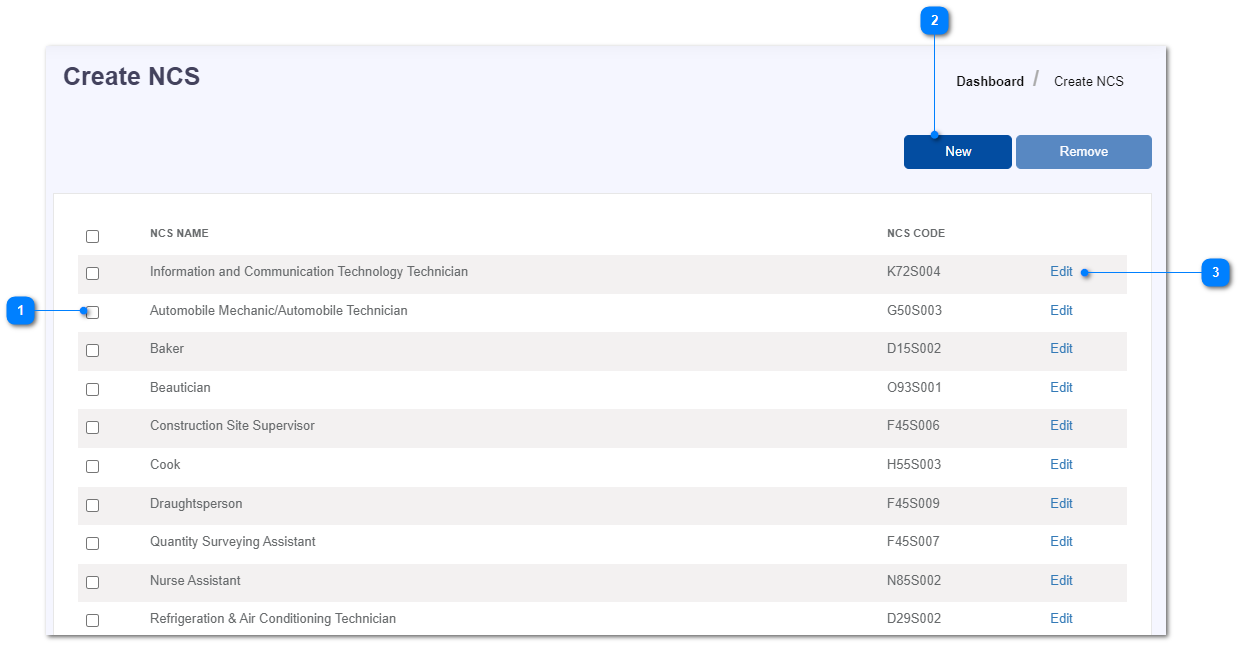 - Click on Edit button to update an existing NCS item.