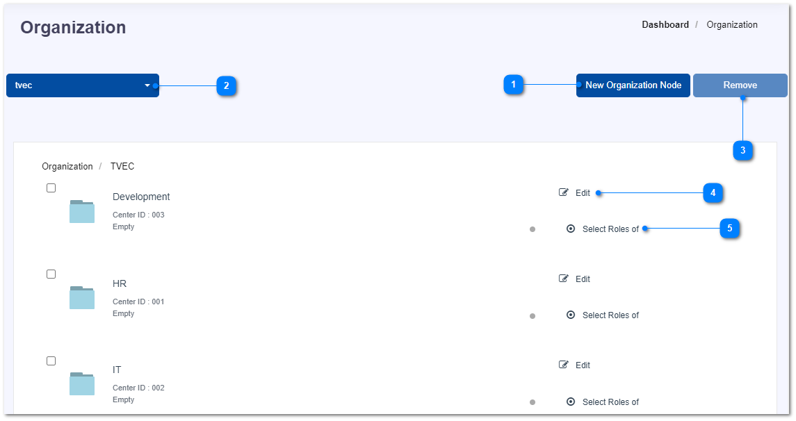 - Click on Select Roles button to change the roles which were allowed in each node.