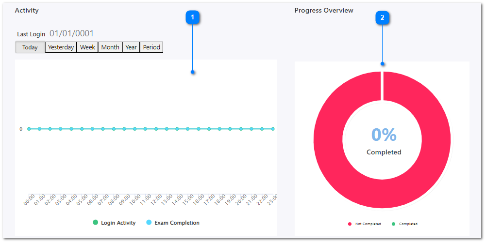 This chart is consisted of the selected users login activity details and exam completion details according to the time duration.