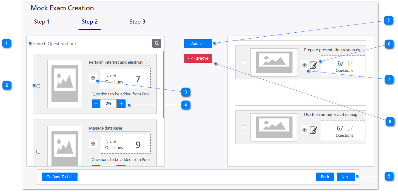 9. If you finalize all the questions that are about to add into this new mock exam, click on Next button to move on to the next step.