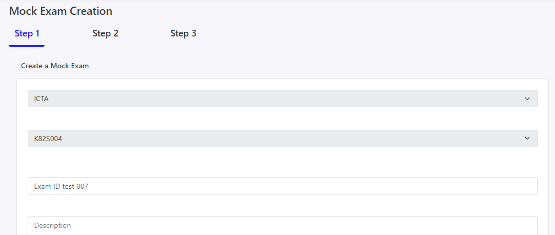 • In this step, you can view the details of a mock exam like NCS Name, Code, exam title, medium, description, and thumbnail image etc.